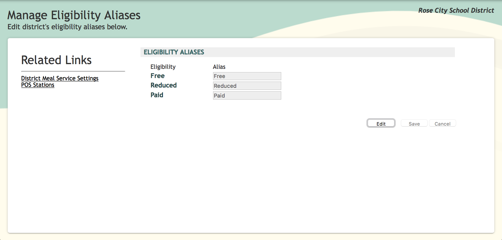 | 2. Enter an Alias for Free, Reduced and/or Paid eligibilities. |