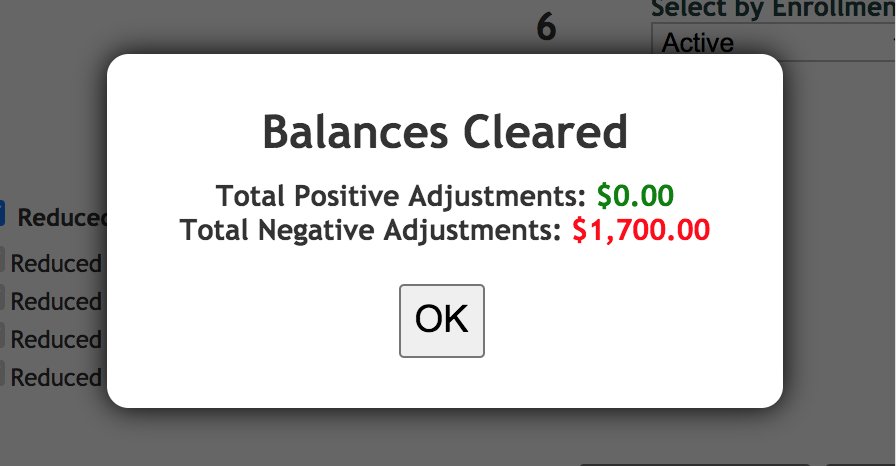 | Once the balances are cleared, the total $ amount of positive and negative adjustments will be confirmed: |